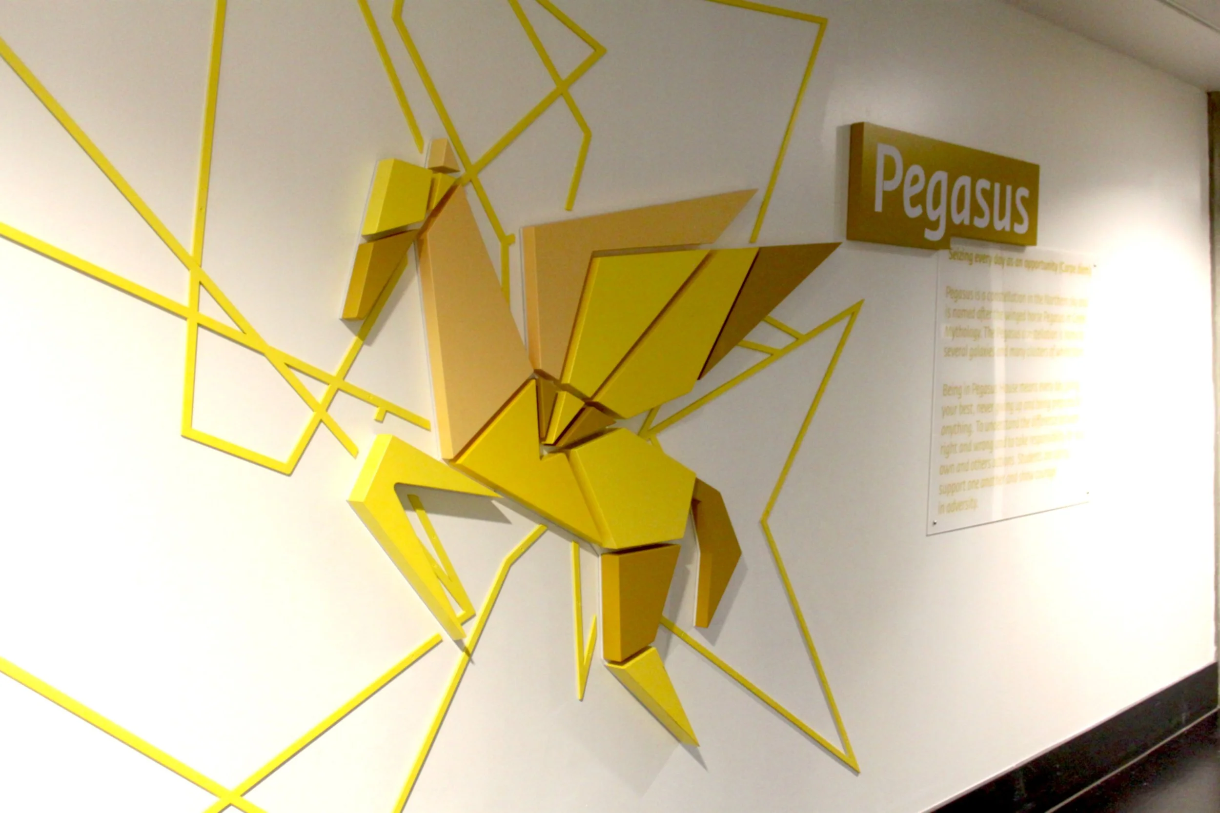 Brand guidelines and design specifications were communicated to architects and manufacturers to create consistent branding and signage for each of the school houses around the new building. Design assets were also provided to the school for continued use in branded school materials for the students.